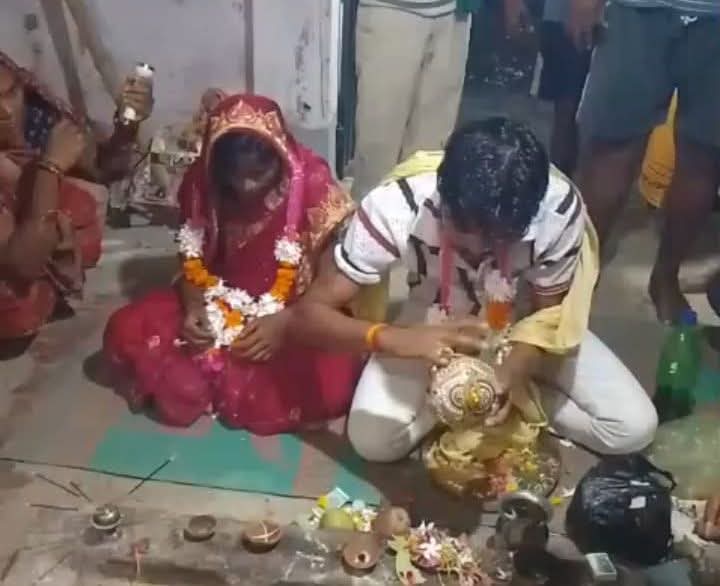 प्राप्त जानकारी के अनुसार मुंडेरवा थाना क्षेत्र के गुलरिहा सिरमा ग्राम निवासी नितेश गौड़ 21 पुत्र राकेश गौड़ विगत चौबीस अगस्त की शाम एक ईंट भट्ठे पर अपनी नाबालिग प्रेमिका से मिलने के लिए गया हुआ था। इस दौरान कुछ लोगों द्वारा दोनों के परिजनों को सूचना देते युगल को पड़री ग्राम निवासी काली माता के मंदिर पर ले गए और रात करीब दस बजे युवक के पिता राकेश गौड़ एवं मां सुनीता देवी तथा किशोरी की मां फूलचंद्र गौड़ उसकी मां चौना देवी की सहमति पर पुरोहित पं. पुरुषोत्तम द्वारा दोनों का विवाह संपन्न कराया गया।