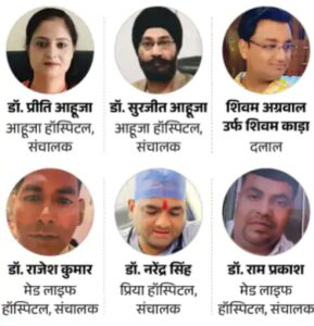आरोपियों में डॉ.सुरजीत सिंह आहूजा, डॉ. प्रीती आहूजा, डॉ. राजेश कुमार, शिवम अग्रवाल, डॉ. राम प्रकाश और डॉ. नरेंद्र सिंह शामिल हैं। आरोपियों से पुलिस को भारी मात्रा में दवाइयां भी प्राप्त हुई हैं।
