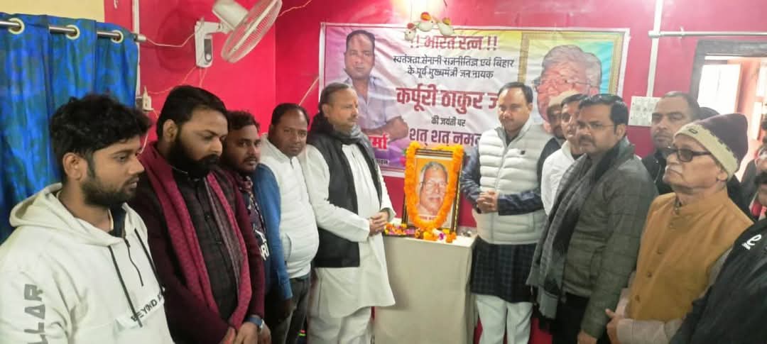 भाजपा के नेता पवन वर्मा, नगर पालिका अध्यक्ष प्रतिनिधि अंकुर वर्मा ने कहा कि स्वतंत्रता सेनानी, शिक्षक, राजनीतिज्ञ तथा बिहार राज्य के दो बार मुख्यमंत्री रह चुके कर्पूरी ठाकुर का जन्म भारत में ब्रिटिश शासन काल के दौरान समस्तीपुर के एक ग्राम पितौंझिया, जिसे अब कर्पूरी ग्राम कहा जाता है, में हुआ । बताया कि भारत छोड़ो आन्दोलन के समय उन्होंने 26 महीने जेल में बिताए थे। उनकी जड़े जनता-जनार्दन के बीच गहरी थीं। तब संचार के इतने सशक्त माध्यम नहीं थे। बावजूद इसके कोई घटना होने पर वह सबसे पहले उनके बीच पहुंचते थे। यह जनता के बीच उनकी गहरी पैठ और आपसी सामंजस्य का प्रतिफल था। वो हमेशा जनता की बेहतरी के लिए प्रयत्नशील रहे। ऐसे जन नेता से राजनीतिज्ञोे को प्रेरणा लेनी चाहिये। अंकुर वर्मा नें कहा कि नगर पालिका क्षेत्र में कर्पूरी ठाकुर की स्मृति में पार्क और प्रतिमा स्थापना की दिशा में प्रयास किये जा रहे हैं। अति शीघ्र यह साकार रूप लेगा।