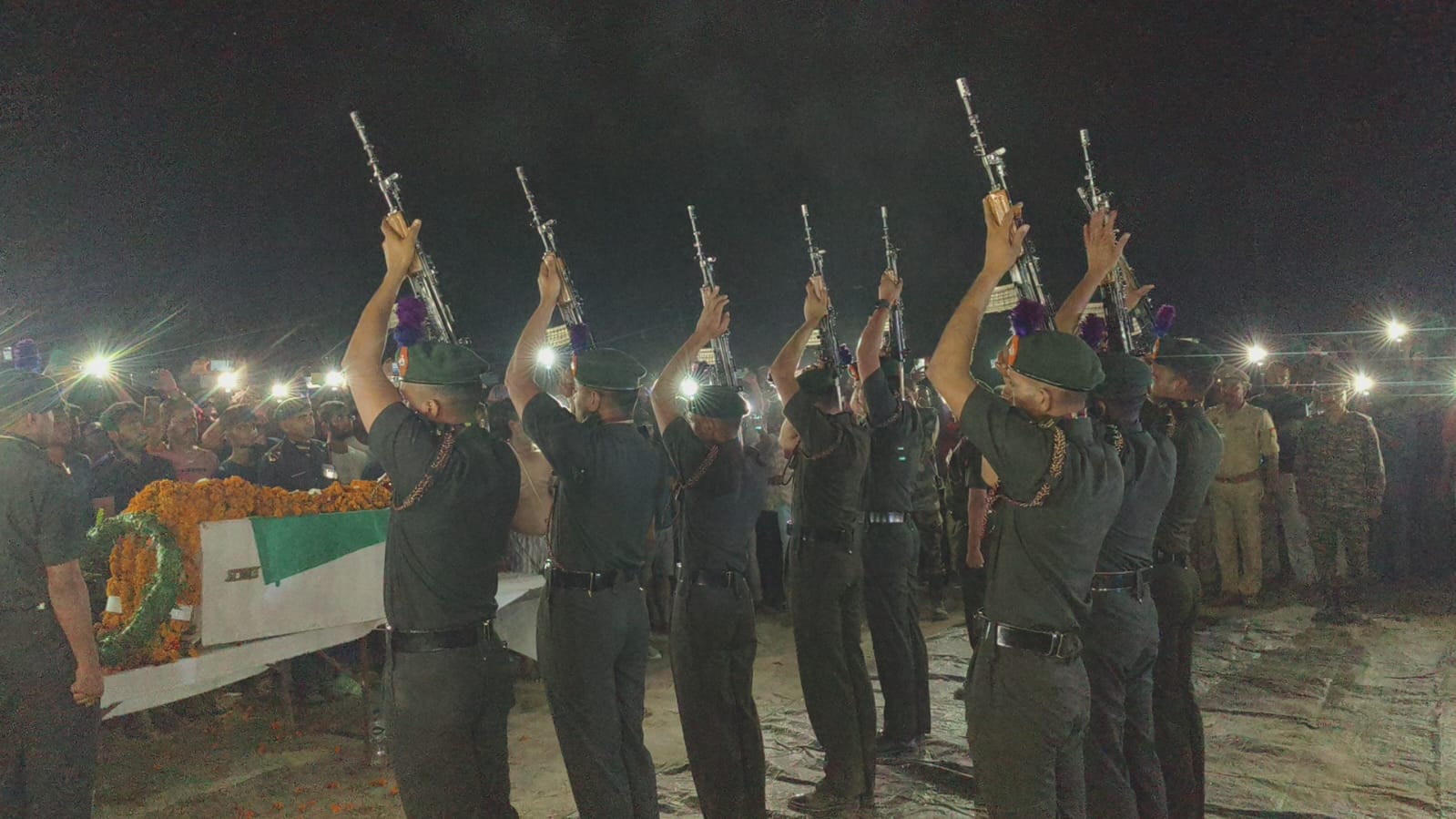 जवान बेटे की असामयिक मौत के बाद लाचार पिता कभी बेटे का शव देखते तो,कभी असमय ही विधवा हुई बहू तथा पिता के प्रेम के साए से मरहूम हुए दो मासूम पौत्रों का करुण क्रंदन सुनकर फफक पड़ते। जिस बेटे के लिए एक पिता नें ढेर सारे सपने बुनें हुए थे, उसको कांपते हुए हाथों से मुखाग्नि देते समय वह चीत्कार उठे। आसपास मौजूद परिजनों द्वारा उन्हें संभाला गया और सेना के जवानों द्वारा अपने साथी को अंतिम धुन बजाकर एवं संगीनों को उल्टा कर अंतिम सलामी दिया गया।