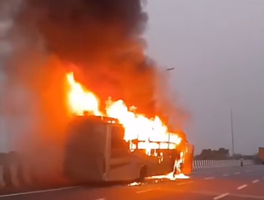 राजधानी लखनऊ में गुरुवार को आग का गोला बनकर दौड़ रही एक बस में पांच लोगों की जिंदा जलकर मौत हो गई। उक्त बस में लगी हुई आग की लपटों को एक किलोमीटर दूर तक देखा गया।